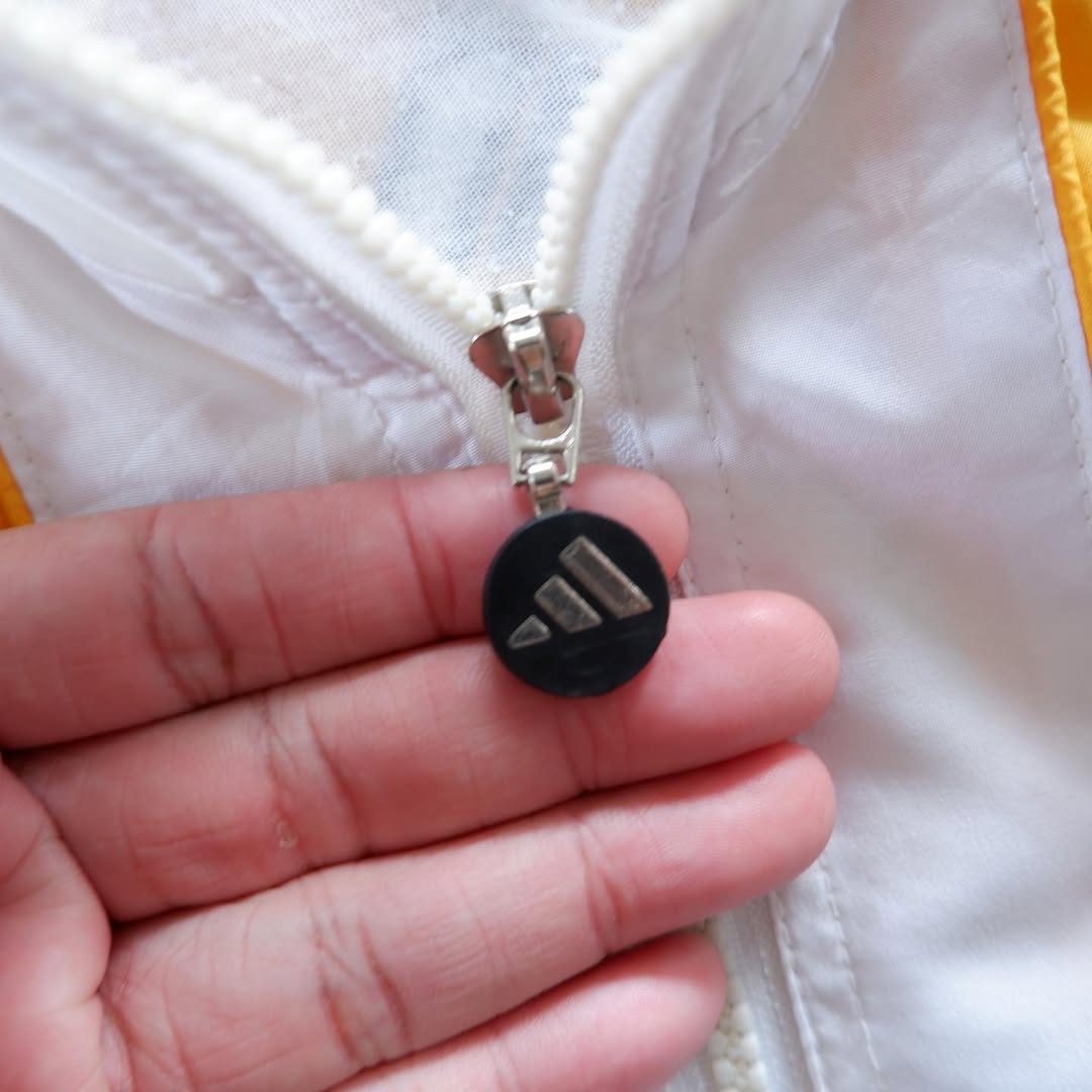 Zipper: Vintage metal zip puller with round adidas badge — a nice collectible touch