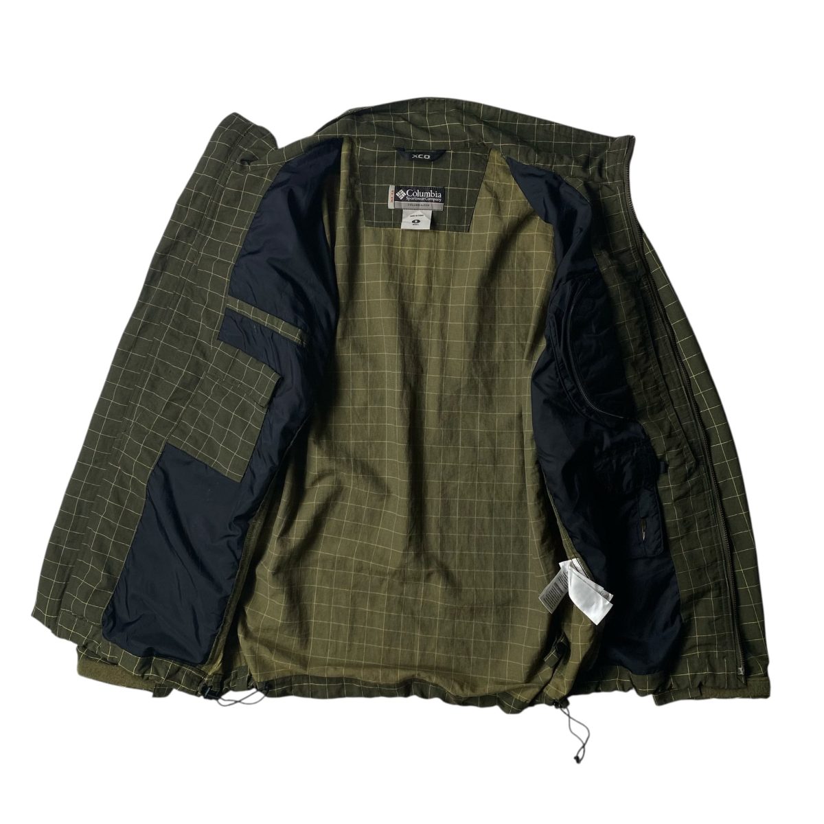This Columbia Sportswear jacket combines both style and functionality, designed with a subtle grid pattern and featuring a comfortable nylon shell and lining. The jacket’s olive green tone is complemented by a sleek interior and drawstring waist, which allows for a customizable fit. It features two exterior pockets and a soft, lined interior for added warmth. Perfect for layering during outdoor activities or as a casual daily wear piece.