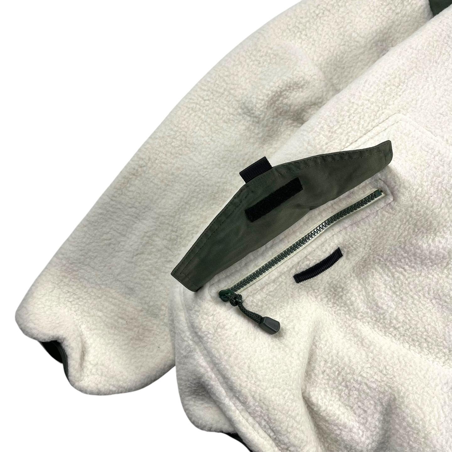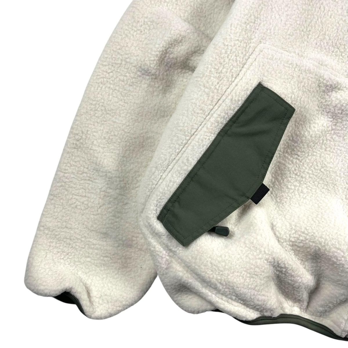 Colorway: Off-white base with military green contrast panels (shoulders, pockets, cuffs)
