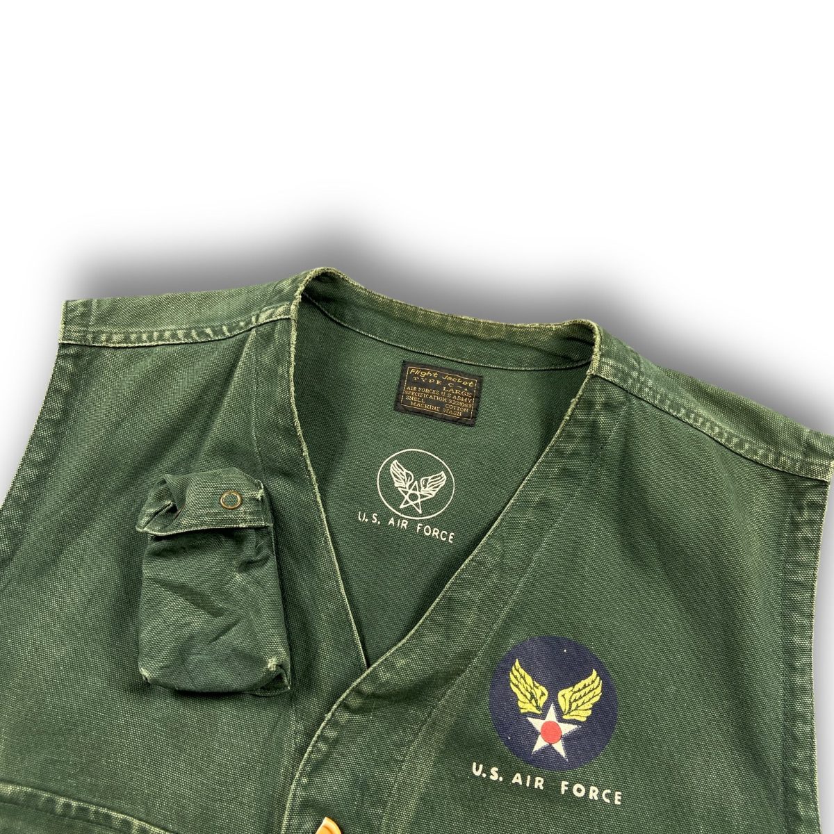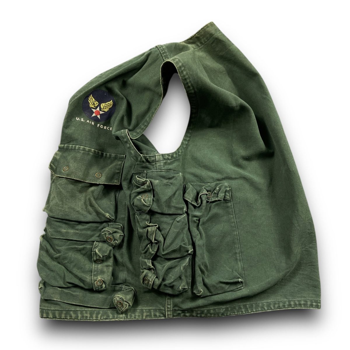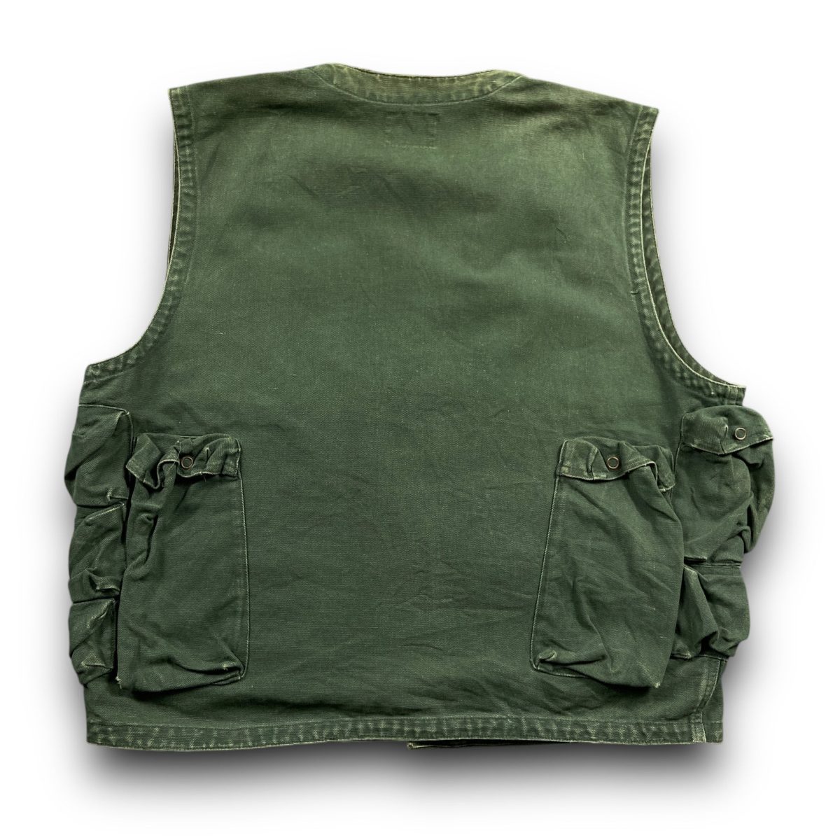 Condition: 8/10 — Good vintage condition overall. Noticeable fading and patina from age and use, giving the vest an authentic military surplus look. No major rips or holes observed.